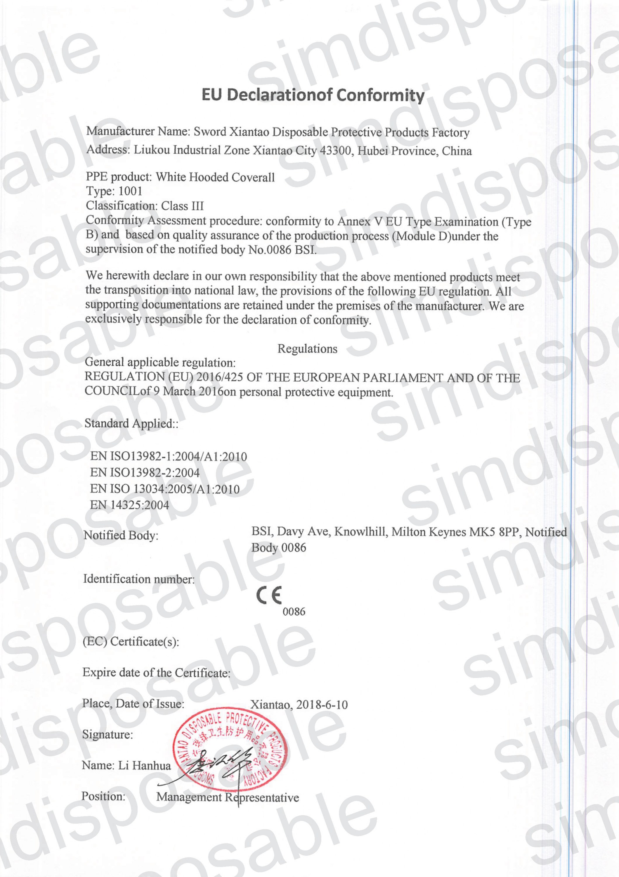 仙桃市瑞鋒衛(wèi)生防護(hù)用品有限公司(Sword Xiantao Disposable Protective Products Factory)位于“江漢明珠”----湖北省仙桃市劉口工業(yè)園,西領(lǐng)古城荊州,滬蓉高速公路、318國(guó)道和滬蓉鐵路橫貫全境,到武漢港100公里,交通便利,地理位置優(yōu)越。